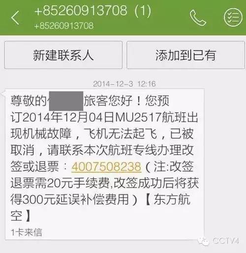 冒充航空公司通知航班取消的