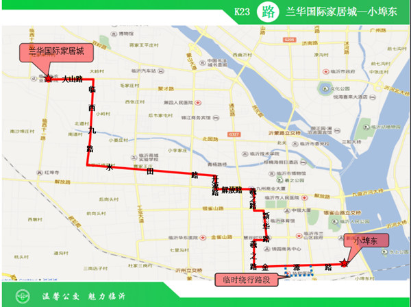 K23由小埠东发车,按原线路运行至沂州路向南、陶然路向西、沂蒙路向北恢复原线路运营。临时取消停靠圣财产保险公司1处站点。