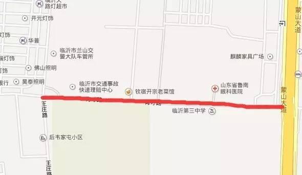 临沂第三中学考点封闭育才路与蒙山大道交会处以西至王庄路路段;