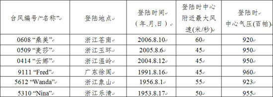 【历史上登陆我国大陆时风速≥45米/秒的台风(8月1-17日)】