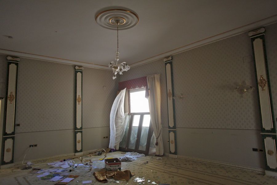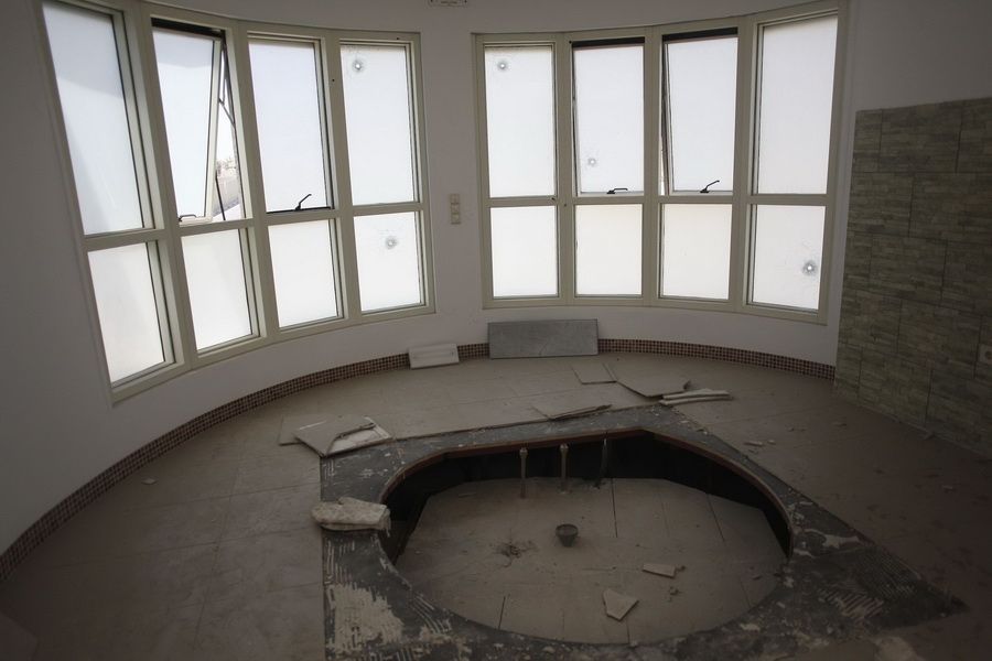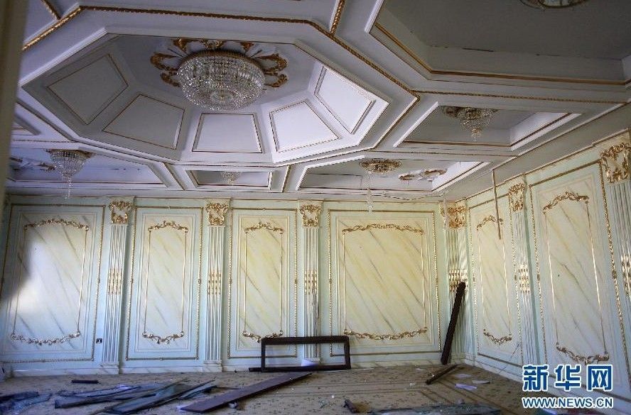 8月25日在利比亚首都的黎波里阿齐齐亚兵营拍摄的卡扎菲之子萨阿迪的客厅。