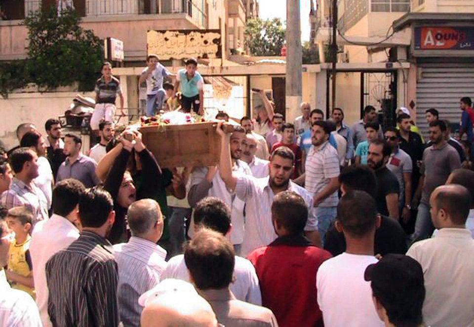 10月7日,叙利亚胡姆斯,当地民众安葬一名被打死的示威者。