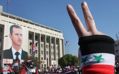 巴沙尔政府的支持者在首都大马士革抗议阿盟制裁。