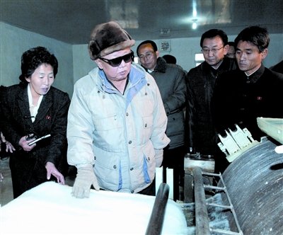 朝鲜中央通讯社2010年11月18日提供的照片显示,金正日视察平安北道昌城郡的工厂。新华社/朝中社
