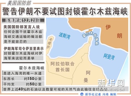 【拉美社华盛顿12月28日电 】美国今天警告伊朗说,美国不会容忍伊朗封锁霍尔木兹海峡。