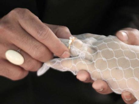 德菲为卡姆苏克戴上戒指,并吻了她的手。