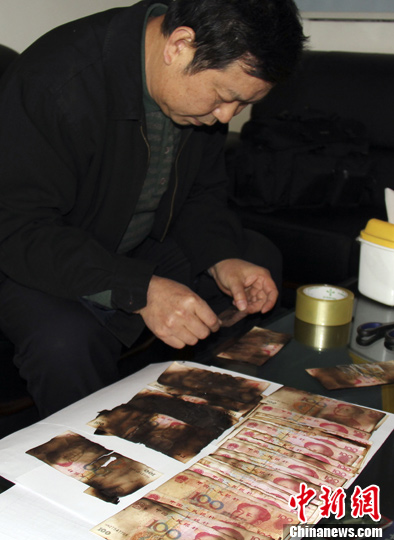 1月11日,广东佛山李女士将打工赚的8000元藏到家里的电饭锅锅身与锅底中间以防贼偷,谁知丈夫回家用电饭锅烧水烧掉约3000元。银行表示,钱已被烤黑,部分已碳化,因无法辨认真假不能全额兑换。中新社记者 黄耀辉 摄