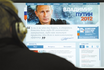 12日,莫斯科,一名市民正在观看普京的竞选网站首页。
