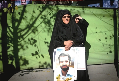 13日,一名妇女拿着遇害核专家罗尚的照片参加其葬礼。新华社发