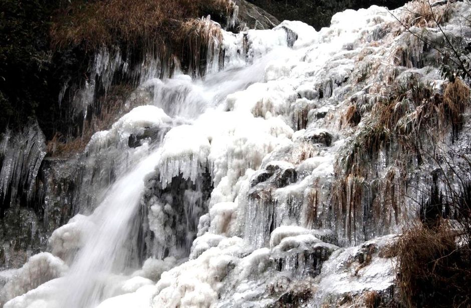 安徽黄山惊现冰瀑奇观 晶莹剔透洁白如玉