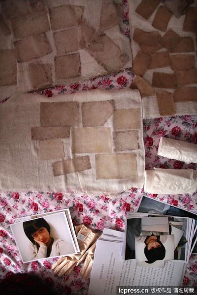 母亲李聪正在为周岩擦拭膏药,门上的“福”字红的刺眼。图/东方IC
