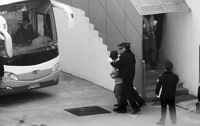 去年12月20日下午,部分被告人被带离胶州法院。弋雍摄