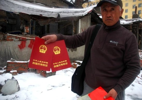 3月14日晚,位于哈尔滨市道里区新阳路472号6户居民的4处门斗、1处棚厦被人故意毁坏。媒体报道称,“22时30分,约有20多个头戴面罩,手持镐把、斧头、菜刀的人突然将玻璃砸碎冲进屋中,把居民强行拖拽到屋外。随后他们便开着铲车将居民们的家推倒,然后扬长而去。”