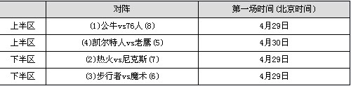 以下是东部季后赛对阵: