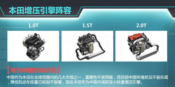 本田此前在中国媒体大会中共发布了1.5L、2.4L、3.0L三款自然吸气直喷引擎,以及针对中国市场研发的1.0T、1.5T、2.0T三款涡轮增压引擎,发动机产品序列得到进一步完善。相对来讲,本田在中国市场投放增压引擎车型的时间相对较晚,这可能也是其2014年在华销量下降的原因之一。