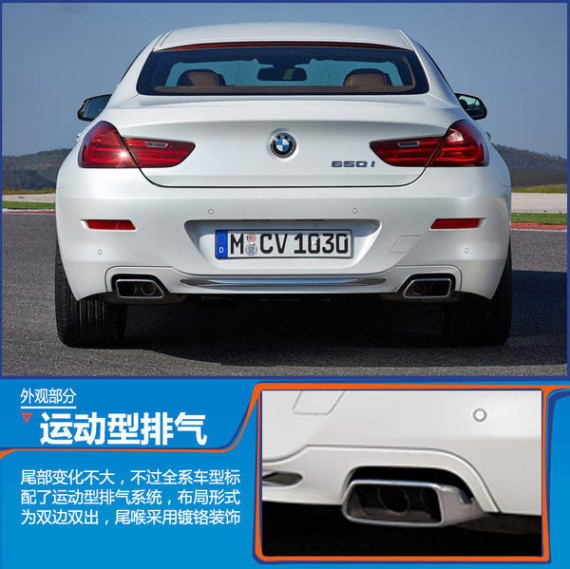 全新6系车型另一大变化,便是动力性能进一步提升。其中搭载4.4T双涡轮增压发动机,采用单涡管双涡轮的形式,最大功率为330kW/5500-6000rpm,峰值扭矩为650Nm/2000-4500rpm。相比现款4.4T发动机最大功率和峰值扭矩,分别增加30kW和50Nm,实现动力的全面优化。传动方面,新款6系全系车型(不包括M6)均为8速自动变速箱。