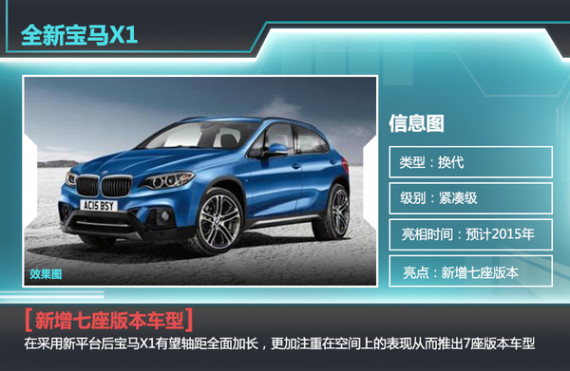 宝马已经在华投产的X1车型即将迎来换代,其中一项重要改变就是增加了七座车型选择。全新宝马X1将由UKL前驱平台研发,该平台突出车型轻量化、节能高效的优势。全新一代的X1在车身尺寸上将有所提升并推出7座版本,驾乘空间以及储物空间方面都将更有竞争力。新车在发动机布局采用横直发动机,除了已有的2.0T版本外新增1.5T三缸小排量版本,此举使得其入门级车型价格进一步下探。这款宝马全新1.5T发动机可输出100kW最大功率及220Nm最大扭矩。