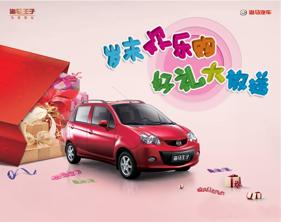 海马王子年终促销,省“钱”又送“礼”。作为海马倾力打造的首款精品微轿,海马王子以仿生动感双圆晶亮前大灯、大嘴造型进气格栅、微笑前脸造型、焰炬式造型后视镜等多重元素,重塑微车新风尚;其内部宽敞的空间,更给驾驶者带来了舒适愉悦的驾车享受。