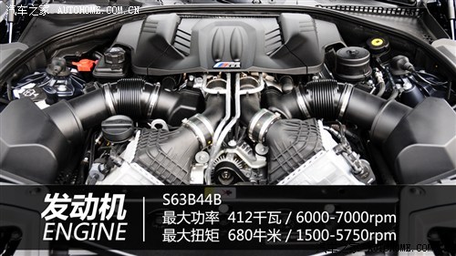 现款X5M、X6M所使用的S63B44 TwinPower Turbo 4.4T V8已经能够爆发出强大的555马力并让硕大的X5M跑出4.7秒的百公里加速成绩(官方数值),就算是直接装在全新M5上,也完全够这台“小车”挥霍的,没人会觉得有何不妥。