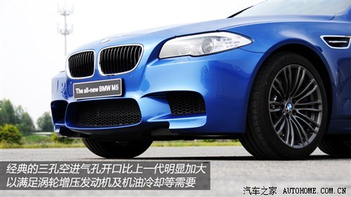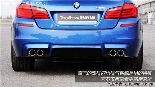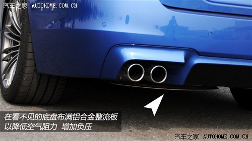 除去5系固有的外观,M空气套件除了为车身赚得视觉效果外更多还是要为性能服务。所以说外型上全新M5依然是那么低调、绅士,若不是骚气的蒙特卡洛金属蓝色烤漆和夸张的多辐轮毂,M5的受关注程度远低于比它便宜三分之二的科迈罗[综述 图片 论坛]。当然,若果你愿意,你完全可以用排气的声浪来吓唬人,引起它们的注意。
