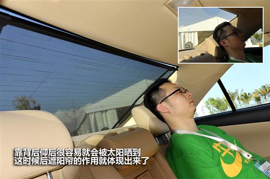 而新车的头部空间也得到了一定的优化,在不破坏车身强度的情况下,前后车顶都采用了内凹的设计,身高180cm的模特头部尚有接近一拳的余量,而后排的情况还要略好于前排,这点比老车强了不少。另外中高配车型的后排靠背可以调节角度,这点在同级车中非常少见,后排乘客很容易就能找到一个更舒服的位置,这点比近期上市的某加长车型那个接近直角的后排座椅强了很多。