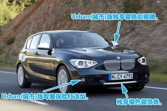 消费者对于入门级豪华的需求,历来是非常个性化的。为了针对同一款车型的不同诉求,宝马将全新1系划分为Sport(运动)版和Urban(城市)版这两个略有差异的版本。从外观上看,Sport(运动)版的保险杠和中网上,更多的运用了黑色的装饰条;而Urban(城市)版在前后保险杠以及中网则采用了银色装饰。保险杠、轮毂、中网和反光镜的不同,可以让我们更加容易的分辨出它们的身份。