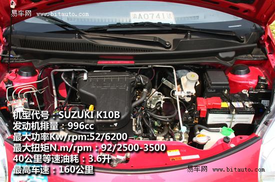 而奥拓搭载的是一款排量为1.0L的发动机,该发动机为3缸12气门双顶置凸轮轴全铝发动机,带有VVT可变气门正时技术,从参数上看这款发动机绝对可以算是1.0L级别当中性能很强的一款,最大功率为52kW/6200rpm,最大扭矩为92Nm/2500-3500rpm,并且从发动机特性上来看该款发动机具有低转速高扭矩的特点。