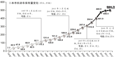 截至前天,本市机动车保有量达501.7万辆,目前的号牌段依然是京N号段。如果继续按2011年净增17.5万辆的增速预期,本市机动车保有量达到600万辆的时间,很可能要被推迟至2017年,这不但遏制了本市机动车的无序高速增长,还为交通缓堵和综合治理赢得5年时间。届时,本市的路网建设等将达到一个新的高度。