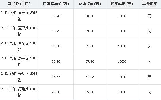 临沂进口起亚通海4S店处了解到,进口索兰托全系优惠一万元。具体降价明细如下表: