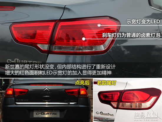 尽管尾灯的造型没有变化,但由于内部结构重新设计,增大了红色面罩的面积,也很容易发现它与老款的区别,这种改变让人感觉更为时尚,时尚之处还在于示宽灯改为了LED长条状,还蛮有精神的。