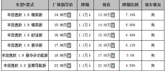 丰田逸致有现车 综合优惠1.4万元!