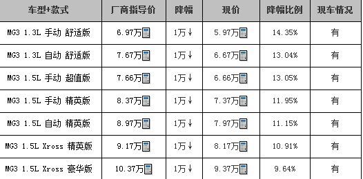 5月第4周临沂降价TOP10 上汽MG3优惠1万元