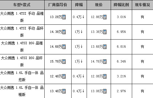 临沂金羊4S店了解到,现在购买2011款朗逸低配车型可享4000元现金优惠,高配车型可享10000元现金优惠。现车方面:目前店内现车较为充足,颜色有黑色和香槟金。店内有试驾车,可试乘试驾。欢迎感兴趣的朋友到店详询。