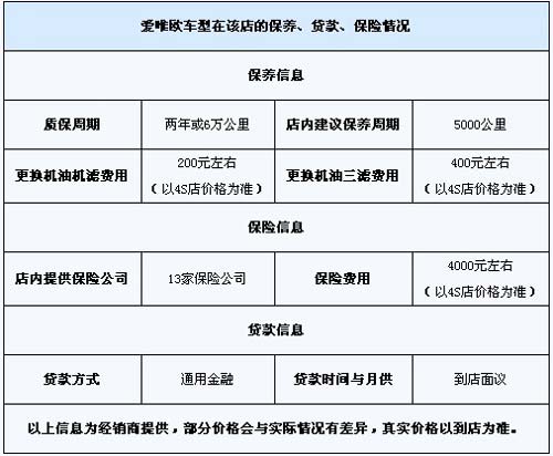 日前,编辑电访了临沂某汽车销售服务有限公司雪佛兰4S店工作人员了解到,2011款爱唯欧现车较为充足,暂时没有任何优惠。若有感兴趣的朋友可到店或电话咨询经销商。