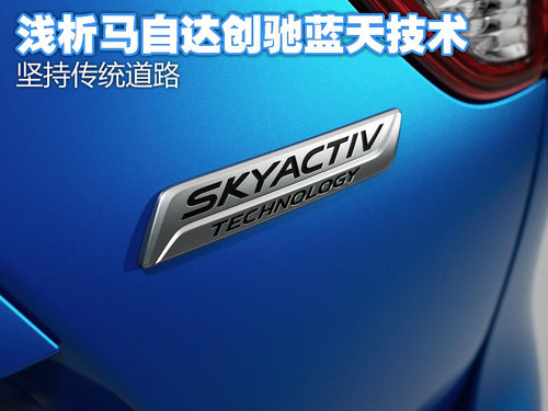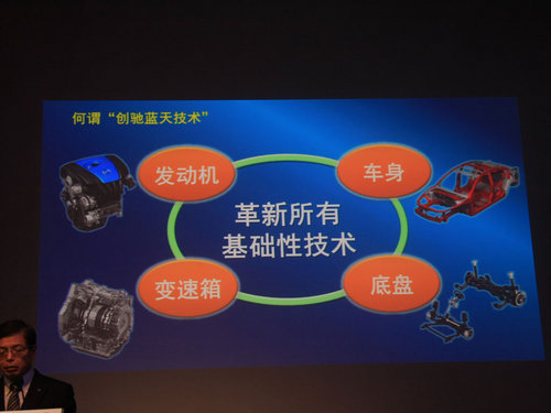马自达的SKYACTIV中文是“创驰蓝天”,并不单单是发动机的改变,它是由四部分组成分别是发动机(SKYACTIV-G、SKYACTIV-D)、变速箱(SKYACTIV-DRIVE、SKYACTIV-MT)车身(SKYACTIV-BODY)和底盘(SKYACTIV-CHASSIS),其中SKYACTIV-G是汽油发动机,SKYACTIV-D是柴油发动机,SKYACTIV-DRIVE为自动变速箱,SKYACTIV-MT为手动变速箱。