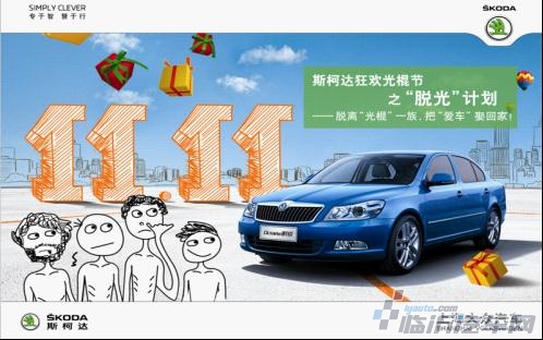2012年11月11日,临沂远通明华斯柯达隆重启动光棍节狂欢之“脱光”计划,活动期间,仅需11.11万元即可享有斯柯达明锐,让您脱离“光棍”一族 把“爱车”娶回家。