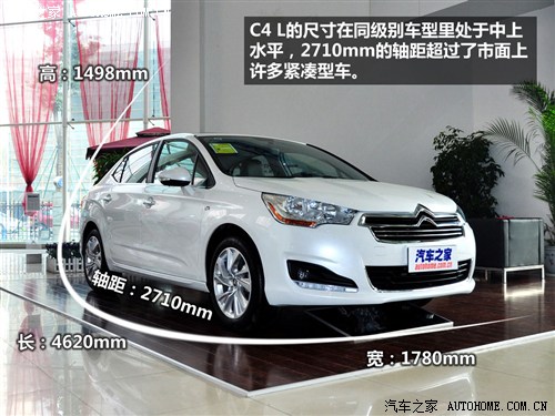 东风雪铁龙C4 L采用了雪铁龙全新家族样式,该车外形饱满,车身线条十分流畅。作为一款“大紧凑”型车,东风雪铁龙C4 L长/宽/高尺寸分别为4620/1780/1498mm,轴距达到2710mm。