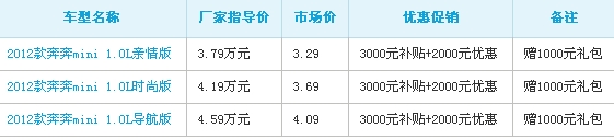 【临沂网汽车】编辑从临沂通华汽车销售服务有限公司了解到,现在店内2012款奔奔mini现车充足,现在购买可享受3000元国家补贴和2000元现金优惠,另外赠送1000元装饰礼包,感兴趣的朋友不妨到店详询,或者关注其新浪官方微博“长安汽车临沂通华4S店”,了解店内最新优惠信息。