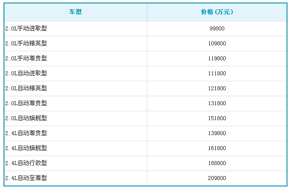 【临沂网汽车】12月19日,吉利汽车宣布吉利帝豪全新EC8正式上市,车型包含2.0L、2.4L两种排量,均搭载吉利自主研发、生产的GeTec高效绿色节能系列发动机,其中手动挡车型可匹配5MT、6MT,自动挡车型则全部匹配DSI6AT手自一体变速器,售价为9.98万元-20.98万元,详见下表:
