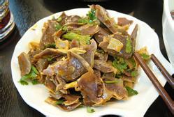 7、取出炖好的鸭胗切片,加入做好的凉拌酱汁和香菜拌匀即可。