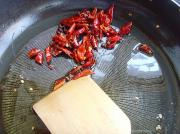 3. 锅内倒入油,放入干辣椒段、花椒用中火炸至呈亮红色,沥油待用。