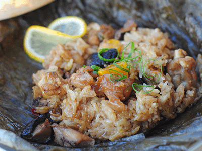 还可以在这个荷香糯米鸡里面加入板栗、笋丁等个人喜欢的材料。