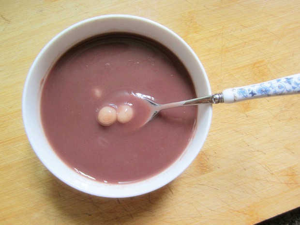 5、另用清水煮熟的小圆子放入豆沙汤中,盛出即可。