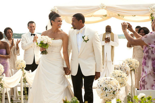 电影《婚礼大斗阵(Jumping the Broom)》中,选中的是Anjolique的婚纱。
