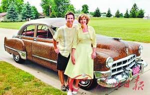 这对夫妻名为拉里·汤普森与特丽萨。1999年,他们看到一辆1949年凯迪拉克Series 62的出售广告,并决定去看看。他们发现这辆车被雪覆盖着,擦去雪后,汽车的喷漆显得斑驳不堪,但依然可看出是旧硬币颜色。为此,汤普森夫妇想出一个主意,即将车买下来,然后用面值1美分的硬币装饰它。于是,这辆名为“便士”(Penny)的车诞生了。汤普森夫妇共用38925枚硬币装饰汽车,总价值为382.95美元,与给汽车喷漆的成本差不多。 (宗禾)