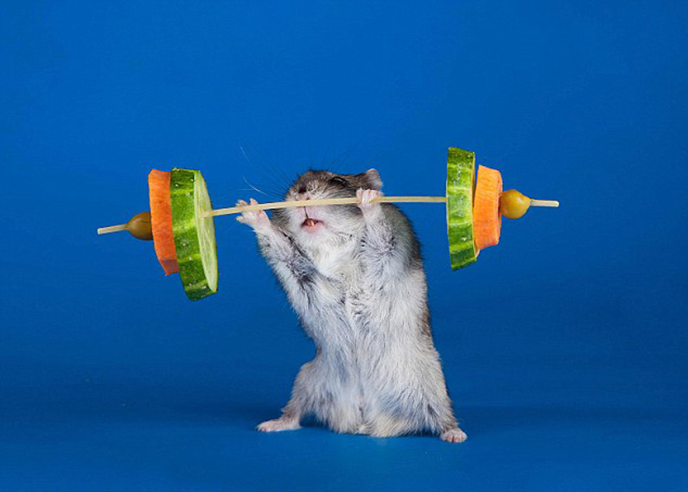 这只正在举重的小仓鼠看上去一点儿也不费力。