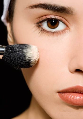 step7.使用刷子沾取带点珠光效果的蜜粉,轻刷在T字部位,创造出带点光泽的立体效果。