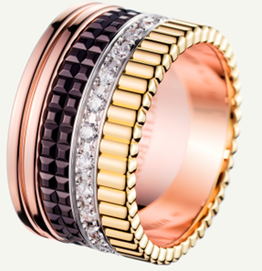 宛若一首宝石与光影交织的曼妙颂曲,钻石品牌QUATRE系列独具匠心地将代表宝诗龙“光之手”卓越技艺的主题纹饰镌刻于4圈戒环之上,串联起梦想与人生的无尽想象——寓意隽永美好的双圈同心圆,象征力量与个性的巴黎饰纹,耀眼又满赋趣味的钻石镶嵌,以及凝聚无限生机的罗缎直线刻纹,正是这四者的完美结合,勾勒出千变万化的绝妙韵味,为每一位佩戴者缔造独一无二的专属风格。