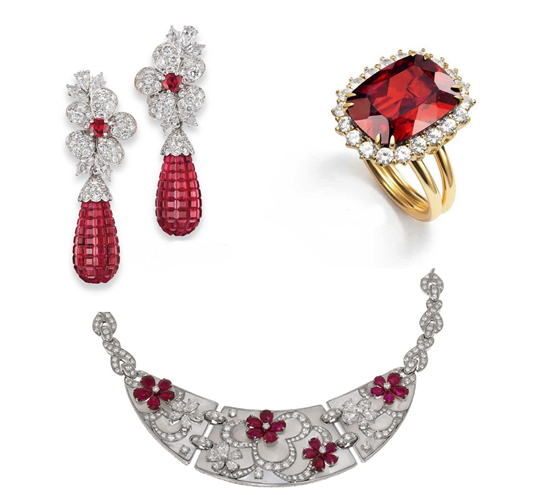 自古以来,红色一直被视为吉祥的色彩,妖娆多姿的美丽,恰似风中的白裙、烈焰红唇,那一点红,迷幻的色彩,如此浓烈,灼尽了时空的距离。红宝石是无可取代的彩色宝石之王,炙热的红色就像不灭的圣火,是最高权威与财富的象征,佩戴它能带来吉祥与好运,因此红宝也被视为新娘珠宝配饰的最好选择。新娘们在婚礼上可以选择一款能够给自己带来好运气的红宝石配饰。红色玫瑰花绽放在颈间,红宝石制成的花芯在灯光下闪闪发光,妆点出一个娇艳欲滴的新娘。