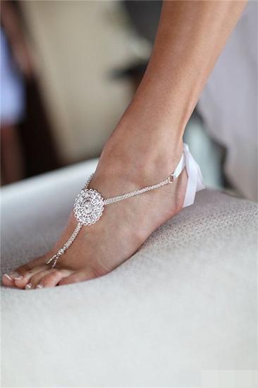 既然是一场轻松而愉快的海滩婚礼,那么一定要脱掉高跟鞋漫步沙滩,享受大海带来愉悦。不过作为新娘必须体现出高贵与神圣,那么这样的脚趾拖鞋既能让新娘看上去优雅而迷人,又能让新娘感受到沙滩的抚慰。